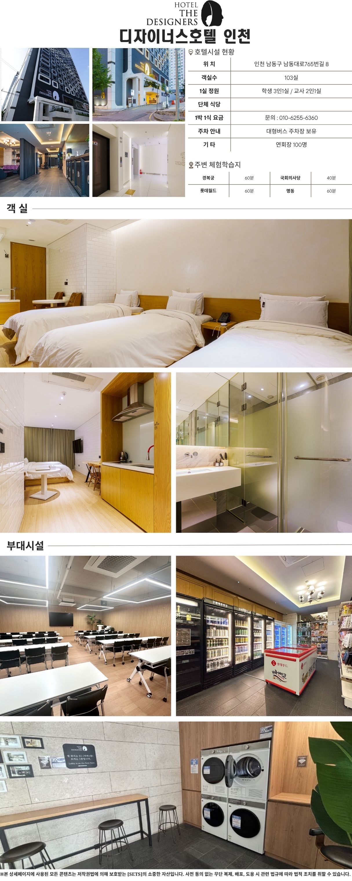 호텔 디자이너스 인천(남동구)은 감각적인 인테리어를 자랑하는 부티크 호텔로, 학생 단체 및 수학여행객에게 합리적인 숙박을 제공합니다. 인천의 중심 상업지구인 구월동에 위치하여 다양한 편의시설 이용이 용이합니다. 예술회관역 인근의 편리한 교통을 바탕으로 인천 전역의 체험학습 장소로 이동하기 좋습니다. 개성 있는 객실에서의 편안한 휴식은 현장학습 일정에 특별한 활력을 더해줄 것입니다.